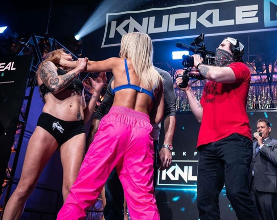 QUEEN MMA Media takes a look at the Bare Knuckle Fighting Championships KNUCKLEMANIA main event (Britain Hart versus Paige Vanzant) of February 5, 2021. A sizable amount of hype went into the buildup of this fight and it lived up to every punch. At the weigh ins the day before the bout an eruption of aggression was released on stage between Hart and Vanzant. Hart walking up boldly and putting her face into the face of Vanzant. Vanzant quickly reacting with a choke grab to Hart’s throat followed with a shove. Loud and heavy words were exchanged, mainly from Hart as BKFC promoter David Feldman struggled to gain control of the situation. News of the pre fight scuffle ran wild across social media as fans began to eagerly anticipate the upcoming fight.